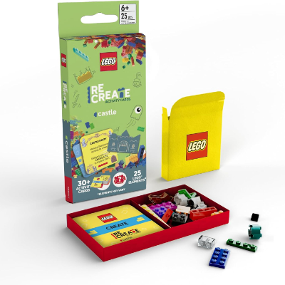 Level up screen-free play with LEGO® Books: ReCreate Activity Cards. This pocket-size kit packs 30+ challenge cards and 25 LEGO elements so kids 6+ can build anywhere—solo, with siblings, or friends. Draw a card and create, boost, or add a twist for fresh builds every time, then remix the bricks for endless new ideas. Why you’ll love it: Portable fun that’s easy to toss in a bag for restaurants, travel, or playdates. Open-ended challenges put imagination first—no long instructions—so quick sessions work great for independent play or together time. What’s inside: 30+ activity cards, 25 LEGO® elements, and compact storage for grab-and-go creativity.